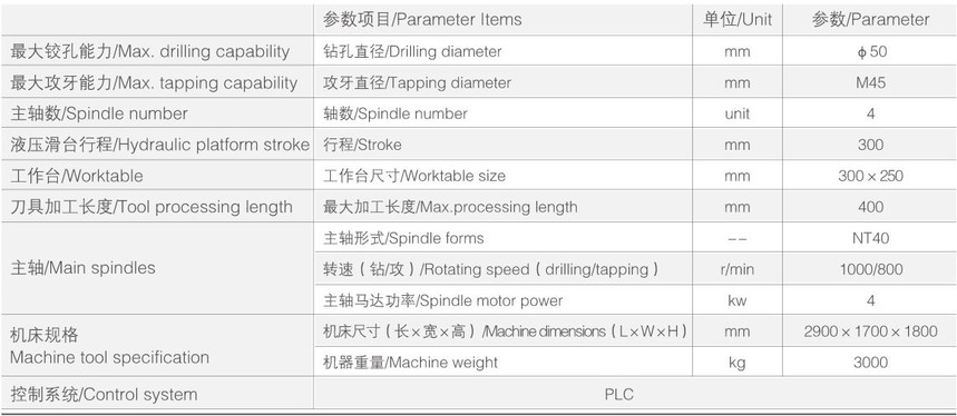 技術(shu)亮點 Technical highlights : 1、 采用(yong)液壓/伺服(fu)滑台,加(jia)工尺寸(cun)精準,定(ding)位速度(du)快。 Adopt hydraulic/servo slide table, precise processing size and fast positioning speed. 2、 采用PLC可編(bian)控制器(qi),反應靈(ling)敏,操作(zuo)方便。 Adopt PLC programmable controller, which is responsive and easy to operate. 3、 液(ye)壓系統(tong)采用精(jing)密電磁(ci)控制閥(fa),調壓方(fang)便,油缸(gang)進給平(ping)穩,行🤑程(cheng)可調,安(an)裝尺寸(cun)統一,互(hu)換性佳(jia)。 The hydraulic system adopts precise electromagnetic control valve, which is convenient for pressure regulation, stable feeding of oil cylinder, adjustable stroke, uniform installation size and good interchangeability.